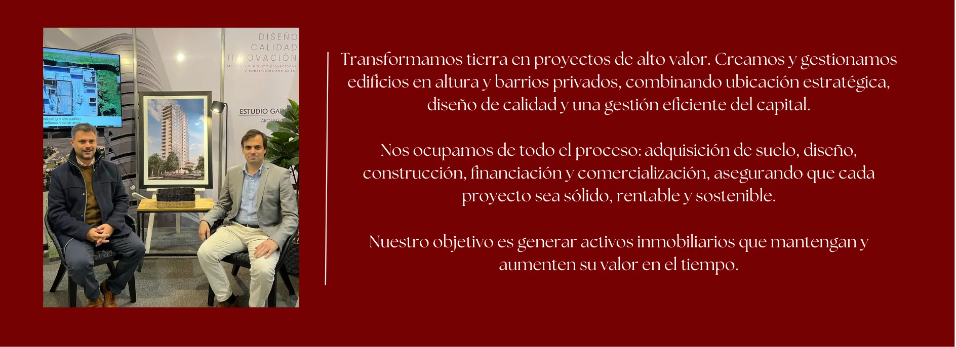 Nuestro objetivo es generar activos inmobiliarios que mantengan y aumenten su valor en el tiempo.
